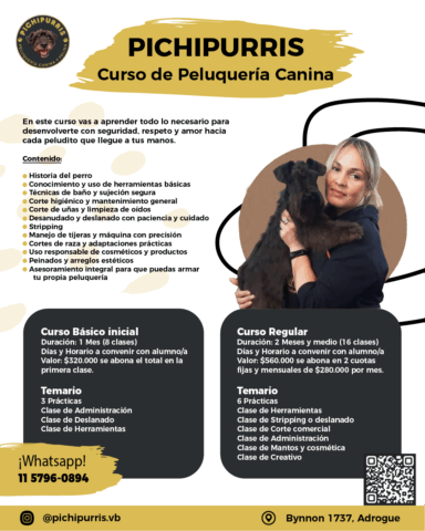 El curso de Asistente de Peluquería Canina está pensado para quienes desean iniciarse desde cero en el mundo de la estética animal. Enseñamos baño, sujeción segura, manejo del comportamiento, uso de herramientas, preparación del manto, desanudado, deslanado, limpieza, higiene y apoyo al peluquero profesional. Formación adaptada también para personas con capacidades diferentes, con paciencia, acompañamiento y un espacio real de aprendizaje. Ideal para sumar conocimientos, trabajar en equipo y abrir camino en la peluquería profesional. Cupos reducidos. Más información por Whatsapp.