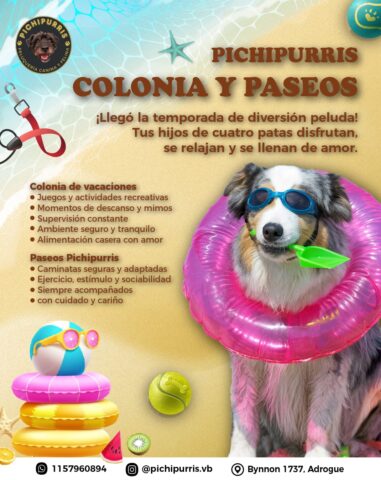 La Colonia de Vacaciones Pichipurris está pensada para que perros y gatos disfruten, jueguen, se relajen y reciban estímulos positivos durante el día. Actividades recreativas, paseos cortos, enriquecimiento, momentos de descanso, alimentación casera y contención permanente. Ambiente seguro y tranquilo. Ideal para mascotas que necesitan movimiento, compañía y una rutina acompañada. Supervisión constante y trato amoroso como en casa. Cupos reducidos para garantizar atención personalizada. No se admiten mascotas agresivas o con enfermedades contagiosas.