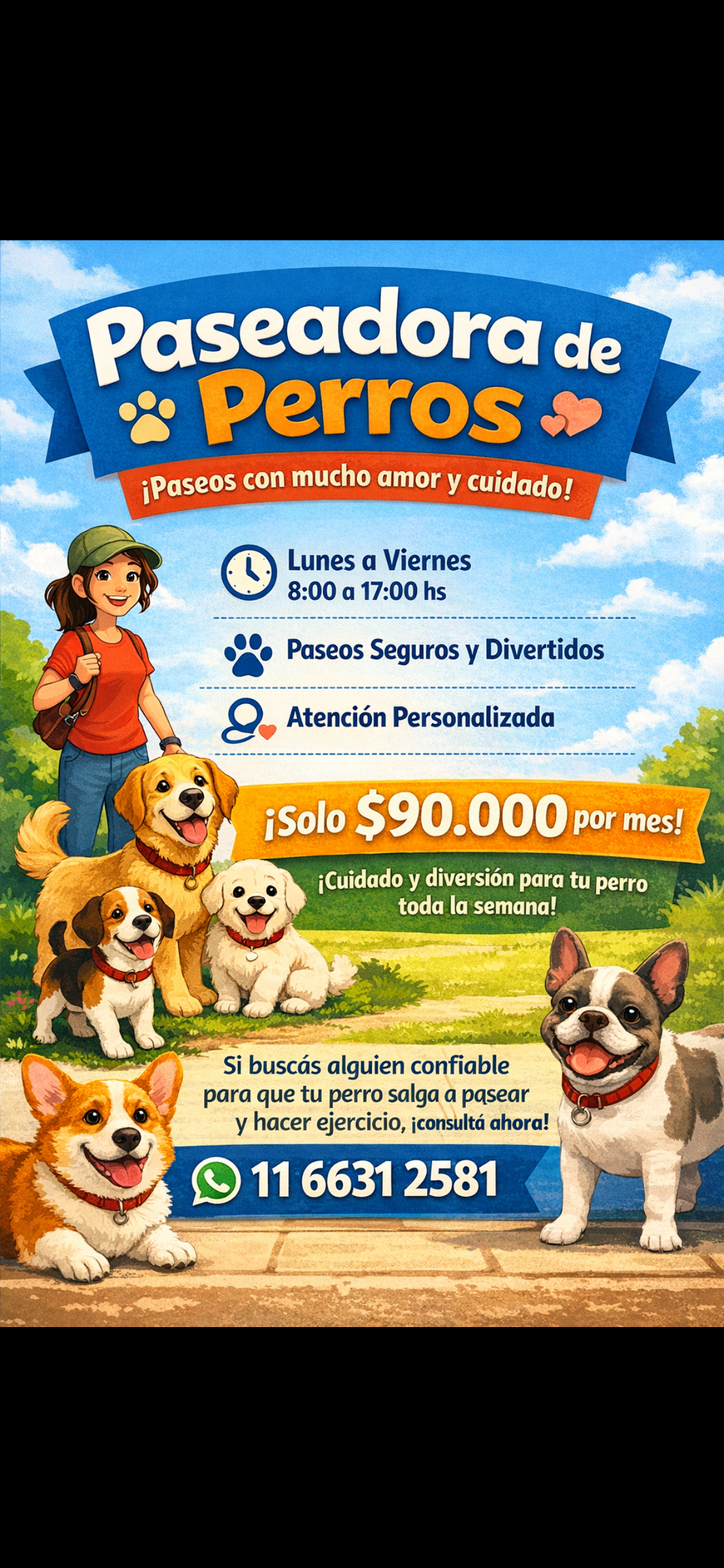 Si estás buscando una persona confiable para pasear a tu perro durante la semana, no dudes en contactarme.